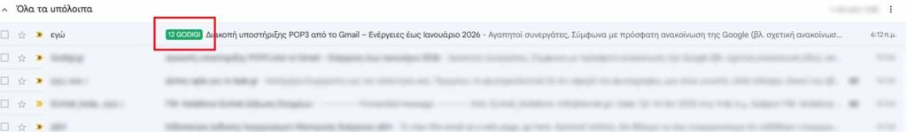 Όσοι/ες από εσάς λαμβάνετε το εταιρικό σας email (π.χ. info@το-domain.σας) μέσα από το Gmail μέσω POP3, από τον Ιανουάριο 2026 η δυνατότητα αυτή δεν θα είναι διαθέσιμη.