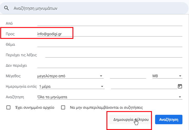 - και μετά πατάτε το Δημιουργία φίλτρου