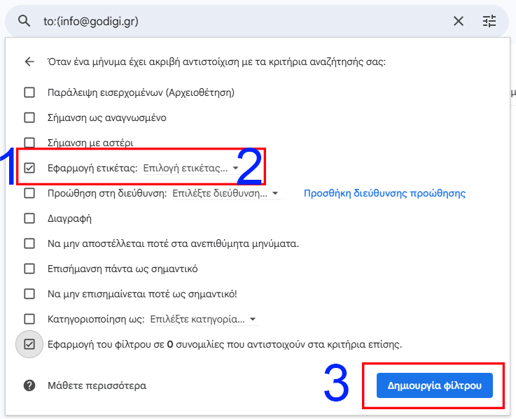 - Πατήστε Δημιουργία φίλτρου (3) και έχετε τελειώσει!