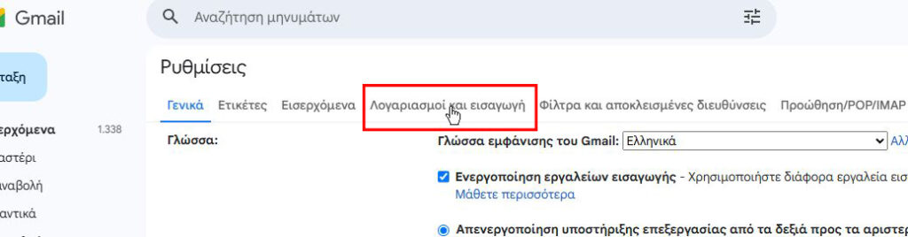 - Από το παράθυρο που σας ανοίγει επιλέγετε το 4ο tab – Λογαριασμοί και εισαγωγή
